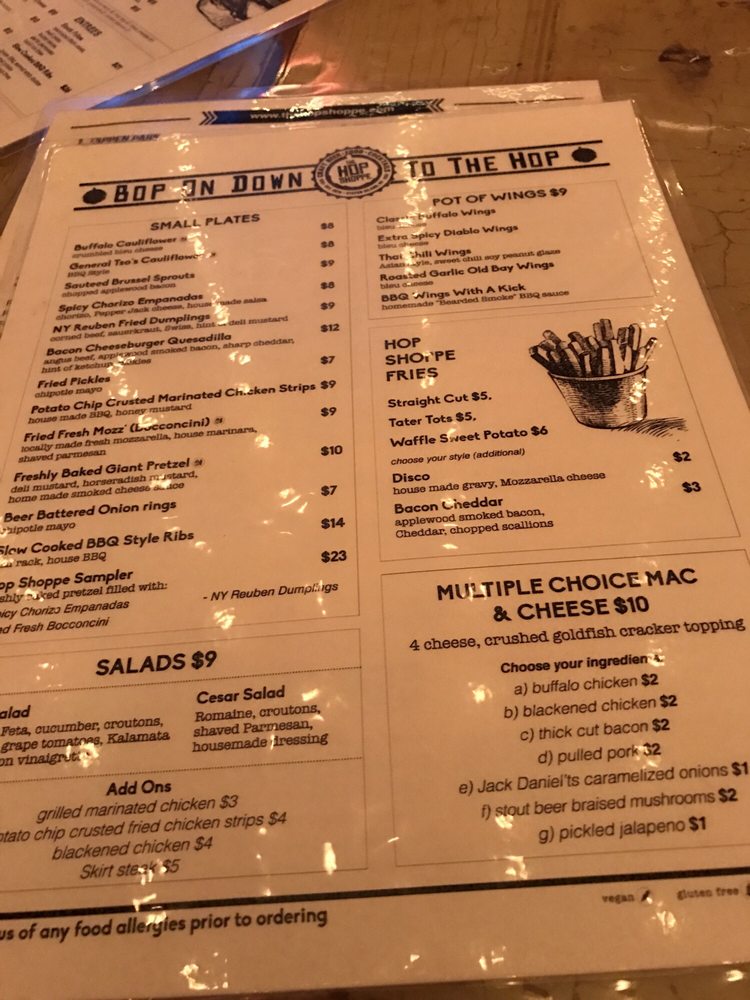 The Hop Shoppe, located in Staten Island, offers a diverse menu for sports bar enthusiasts. From Chipotle Chicken Tacos to Surf & Turf entrées, there are options for everyone, including vegan and vegetarian choices. The cozy atmosphere with a mix of hipster and trendy vibes creates a welcoming experience for all. Customers praise the friendly staff, extensive drink options, and enjoyable activities like karaoke nights and arcade games. The dishes, like the Shrimpy Shrimp Cheesesteak and Holy Grail burger, receive high praise for their flavors and generous portions. Prices are moderate, making it a great spot for a casual meal with friends or family. Don't miss out on the unique offerings like the Buffalo Cauliflower and Freshly Baked Giant Pretzel. Join the fun at The Hop Shoppe and indulge in a memorable dining experience!